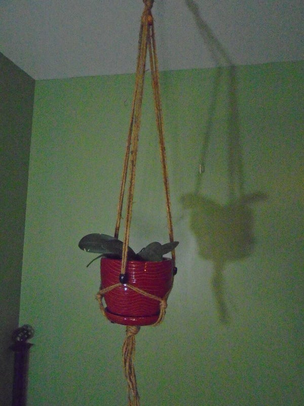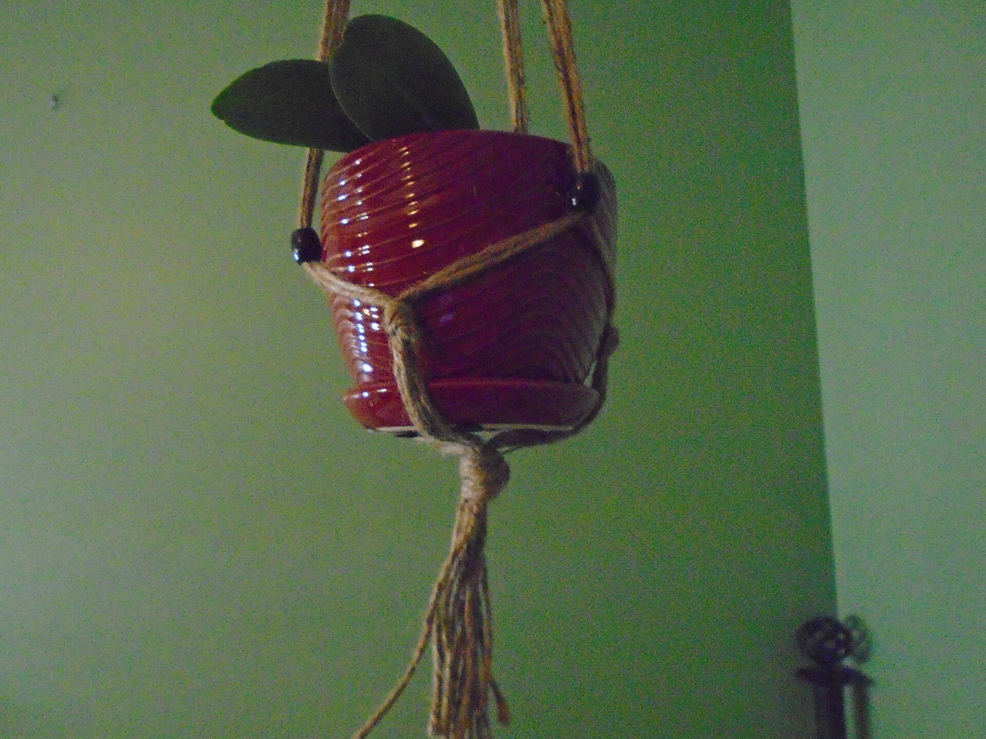 Jute plant hanger, suitable for small to medium pot. Black & tan wood beads. Plant not included. 44" long without plant